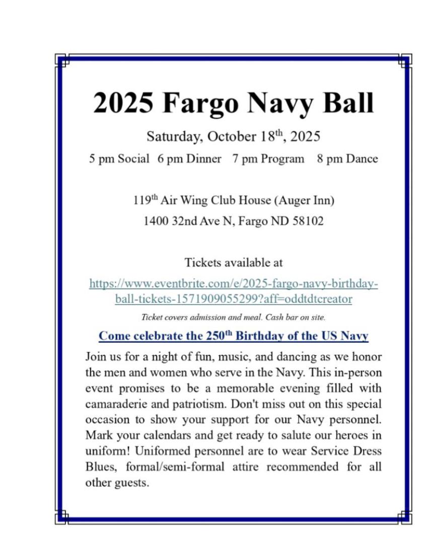 Thank you to Officer Michael Clower, Fargo Police Department, for being our guest at our September Post Meeting. Officer Clower dropped off nearly 50 American flags which will be retired on a later date. The flags were dropped off with Fargo Police Department officers during a month-long campaign earlier this summer called "Flag an Officer Down".