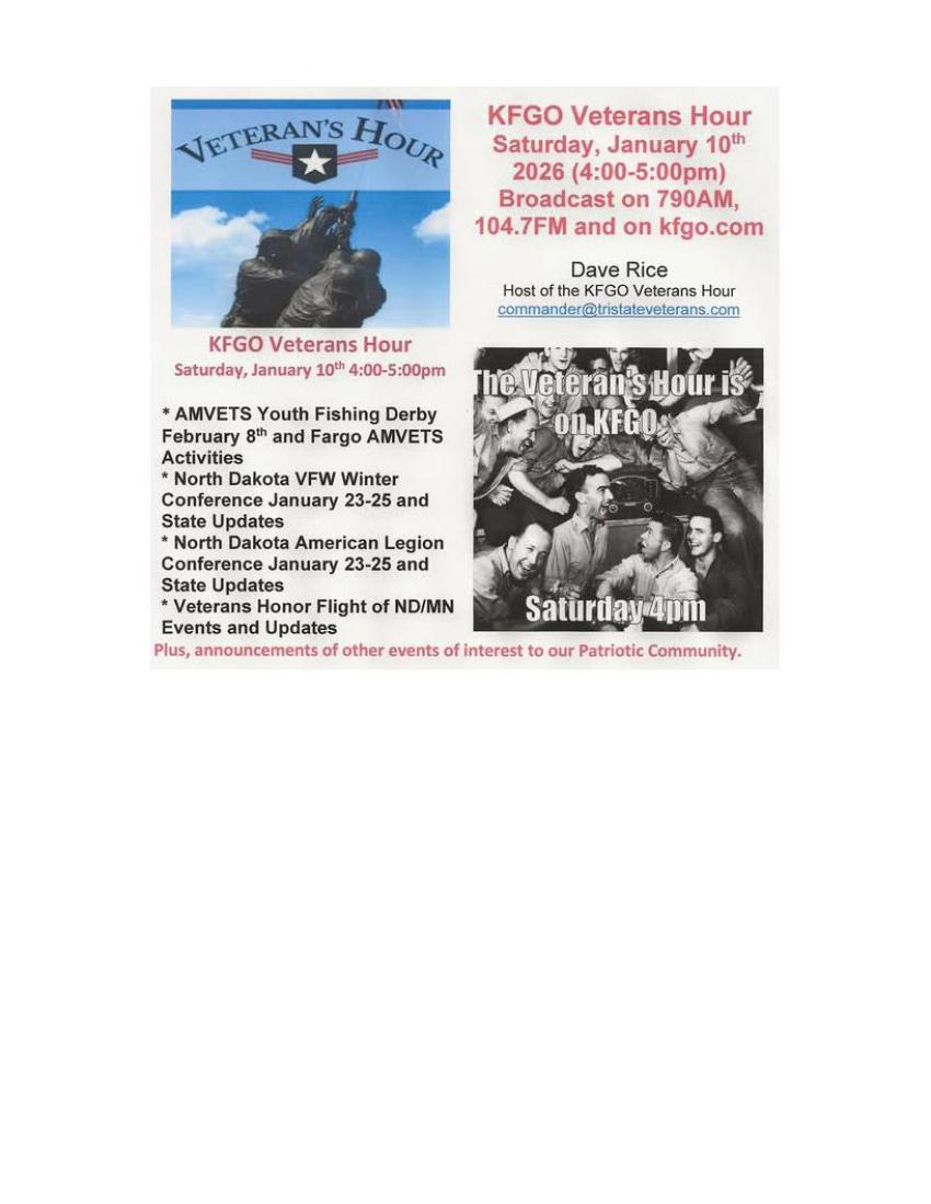 Welcome to the internet home of the Gilbert C. Grafton American Legion Post 2 of Fargo, North Dakota. Here, you will find all the latest information on the happenings of Post 2. The post is alive and well and contributing to the community!