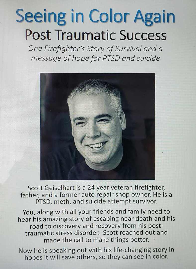 At our November 4, 2025 Post meeting we had the opportunity to listen to a personally devastating story of trauma, PTSD, meth addiction, loss and suicide. But we also heard the story of redemption, seeking help and what might be considered Divine Intervention in the compelling story of Scott Geiselhart. It was a story about no matter how far down the rabbit hole you are, you CAN come back. But you can't do it by yourself. It takes courage to ask for help but you have shown courage when you raised your right hand and swore to defend all enemies, both foreign and domestic. Have the courage now to ask for help! It's as simple as dialing 988. Do it NOW!!!
