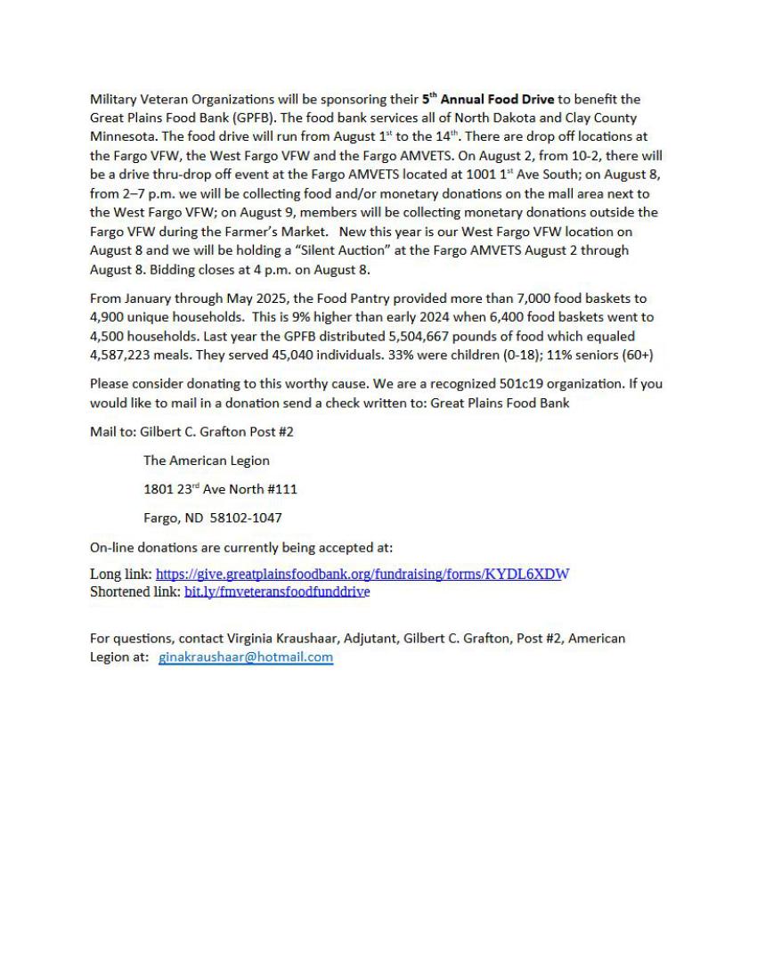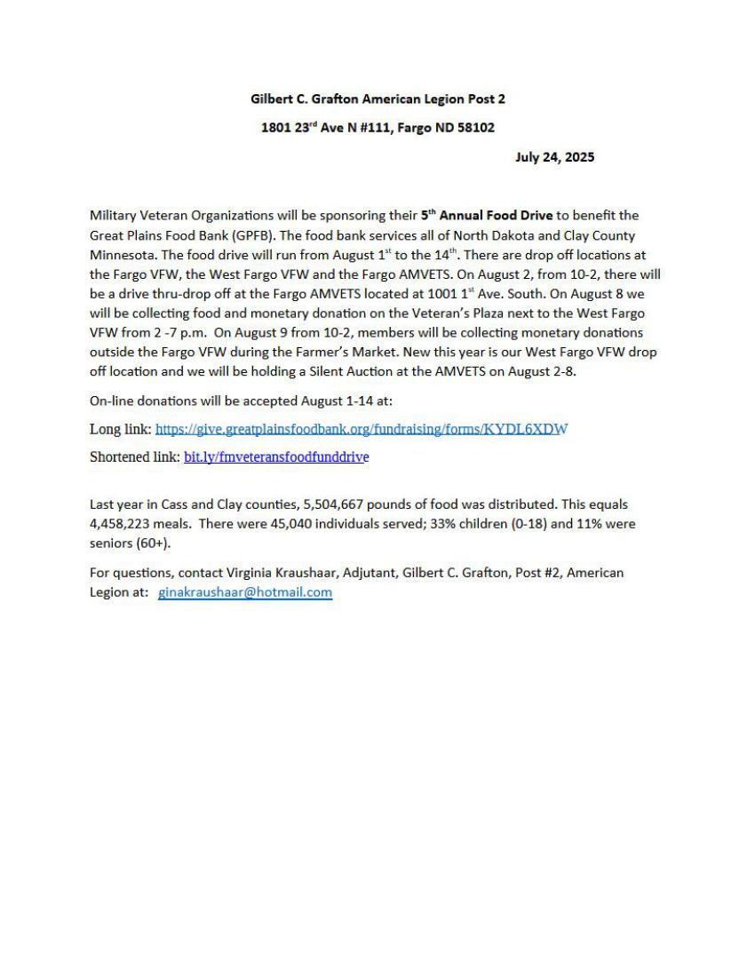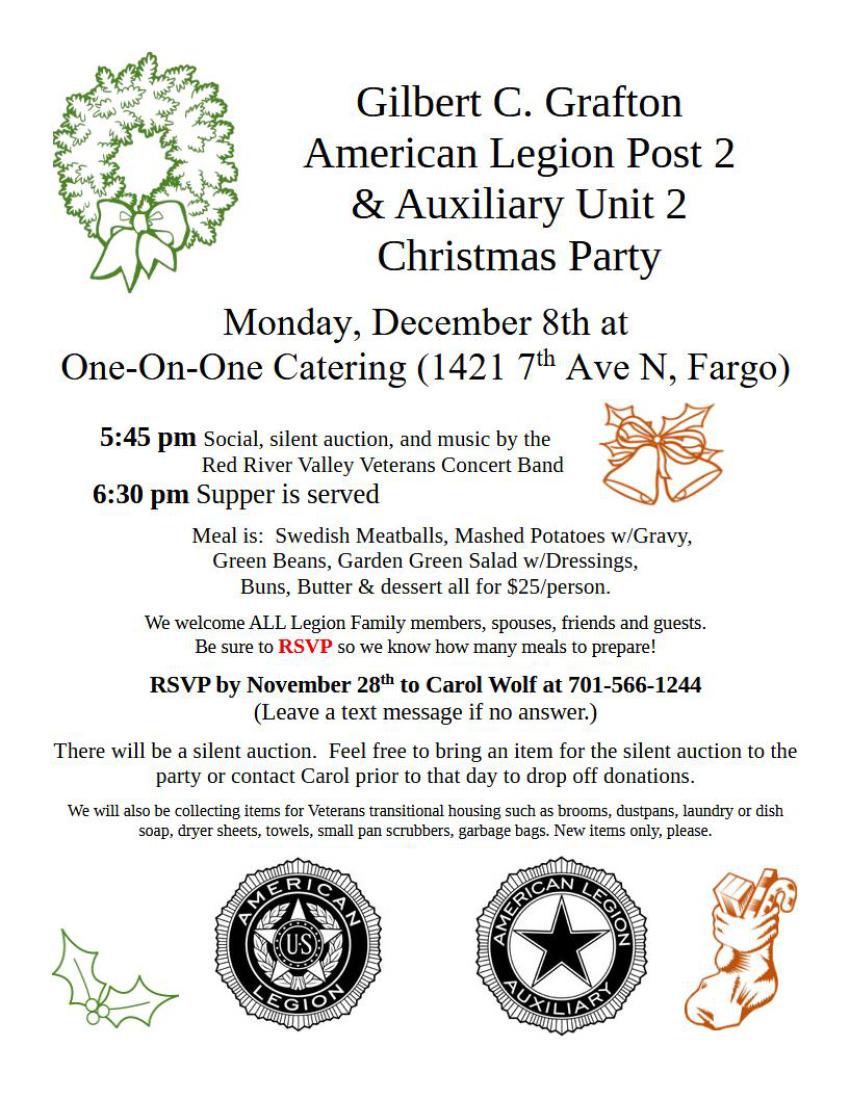 Post 2 member meetings are always the first Tuesday of each month at the Fargo VFW Post, lower level at 7:00 pm